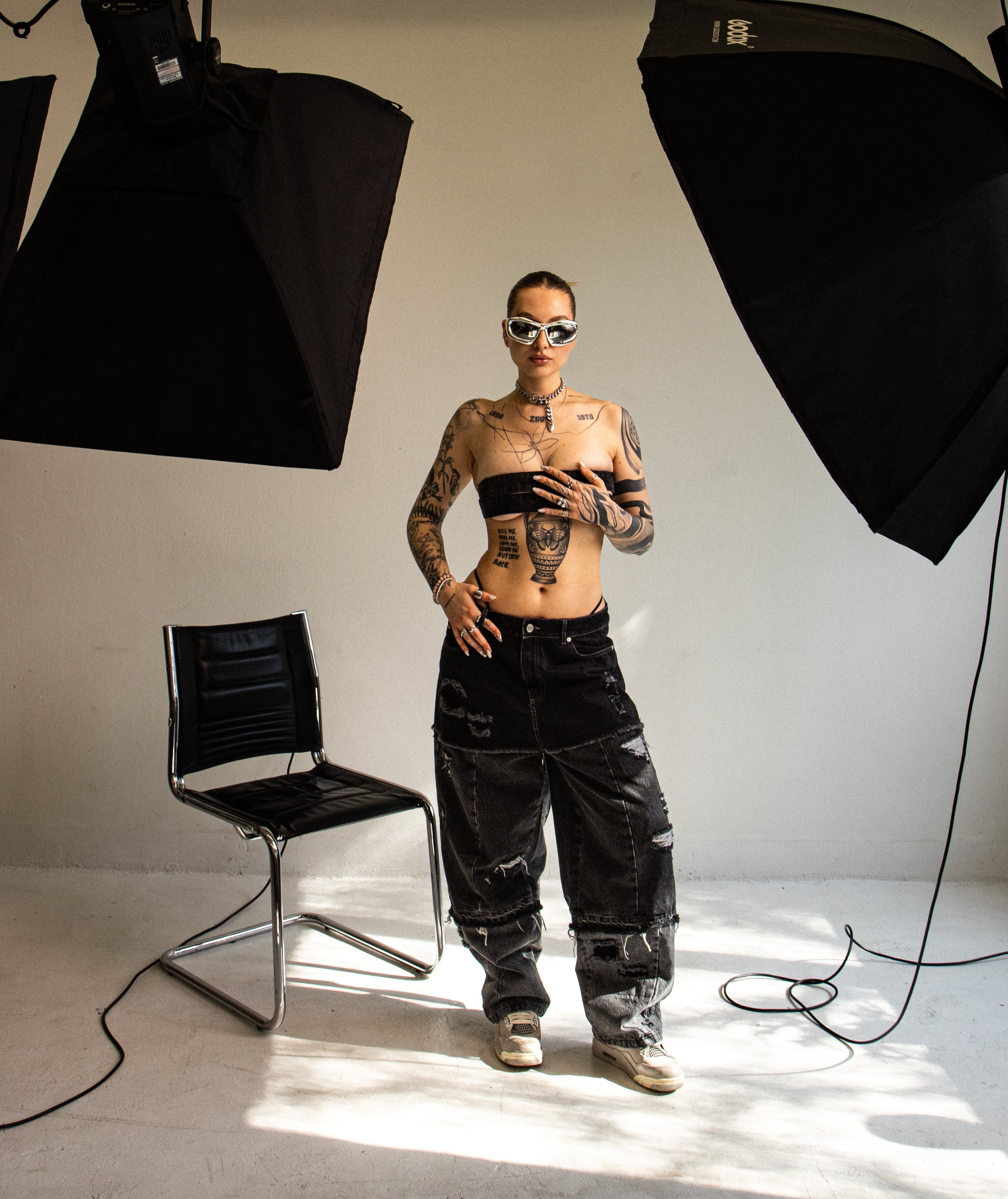 Ashline hoodie + Black panel jeans