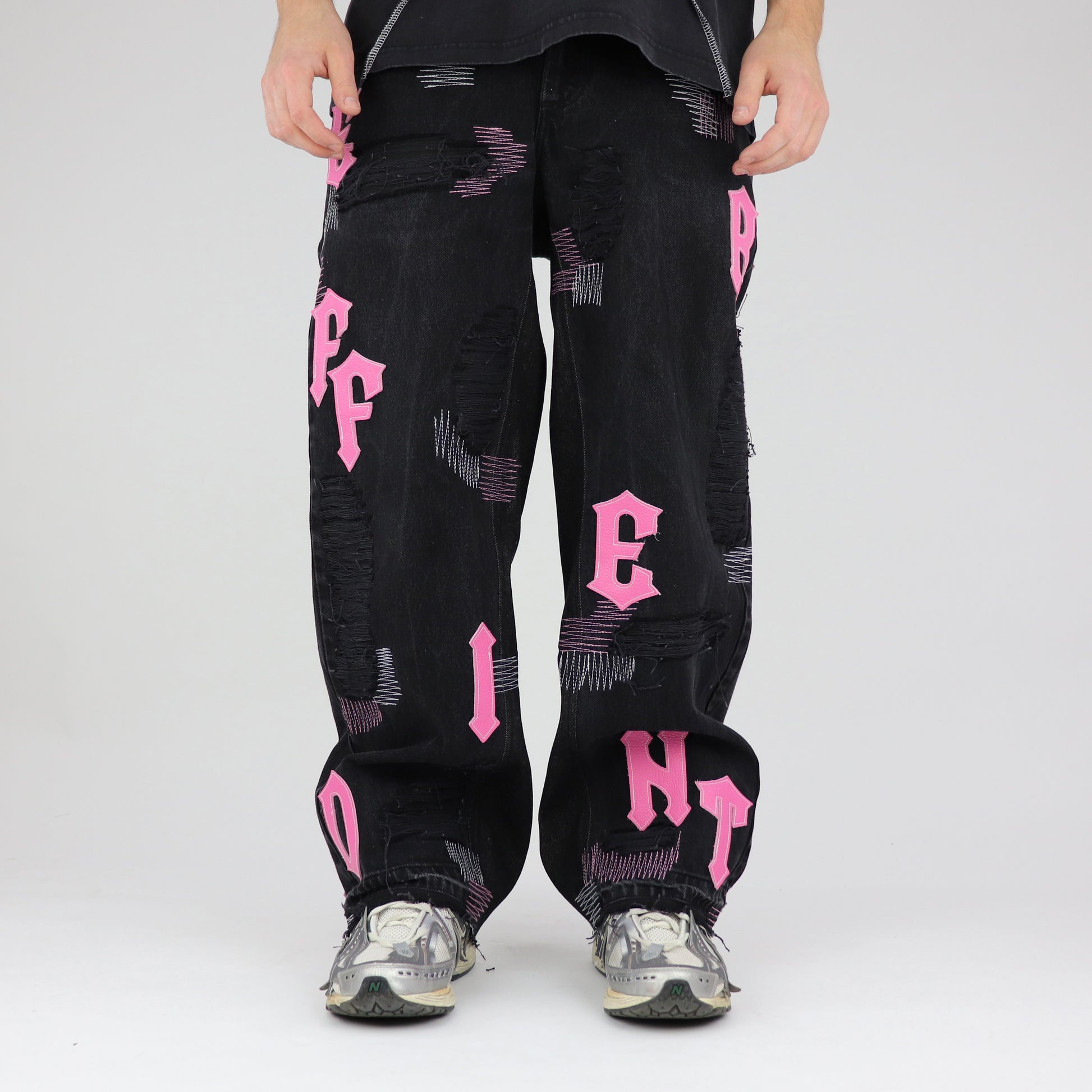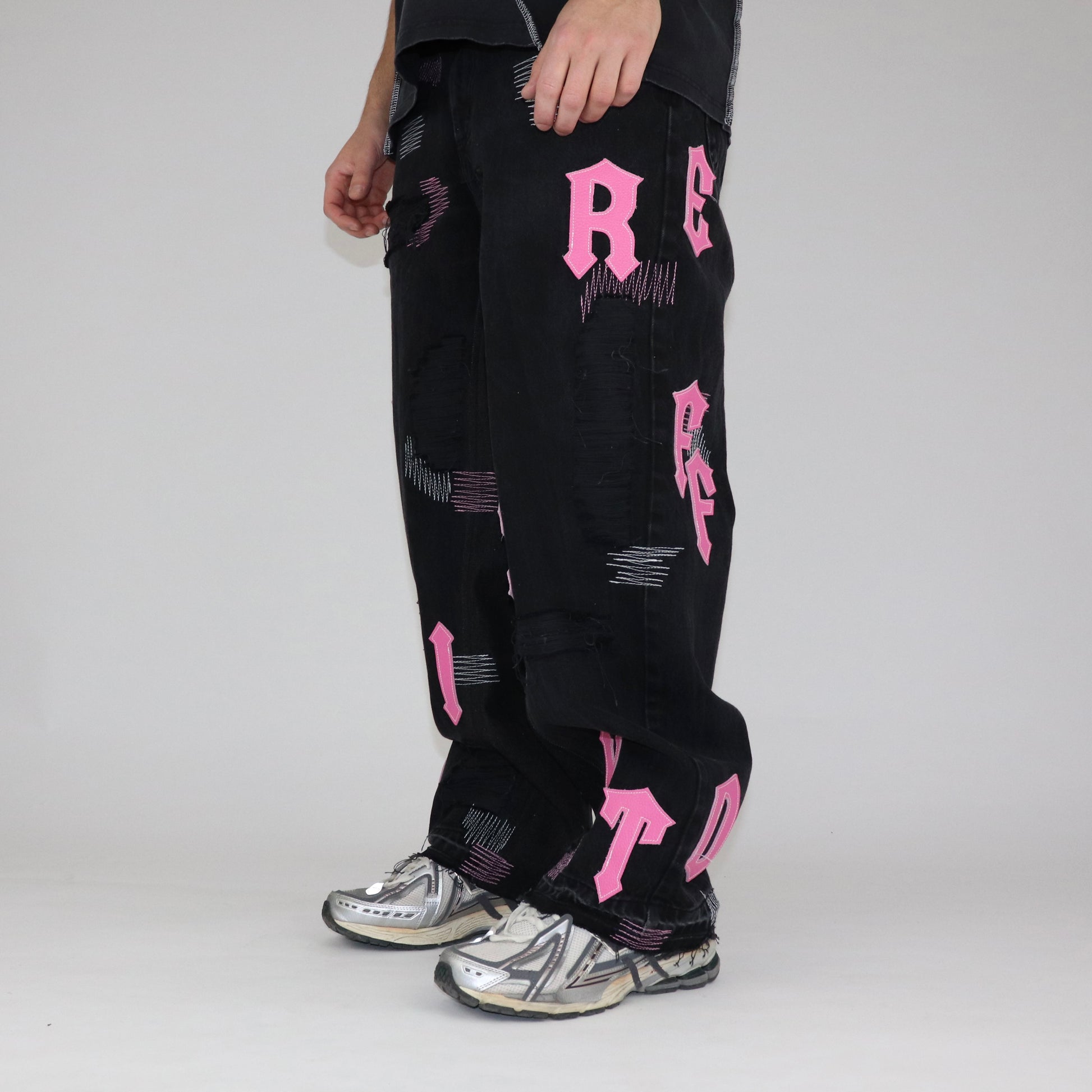Black-pink baggy jeans